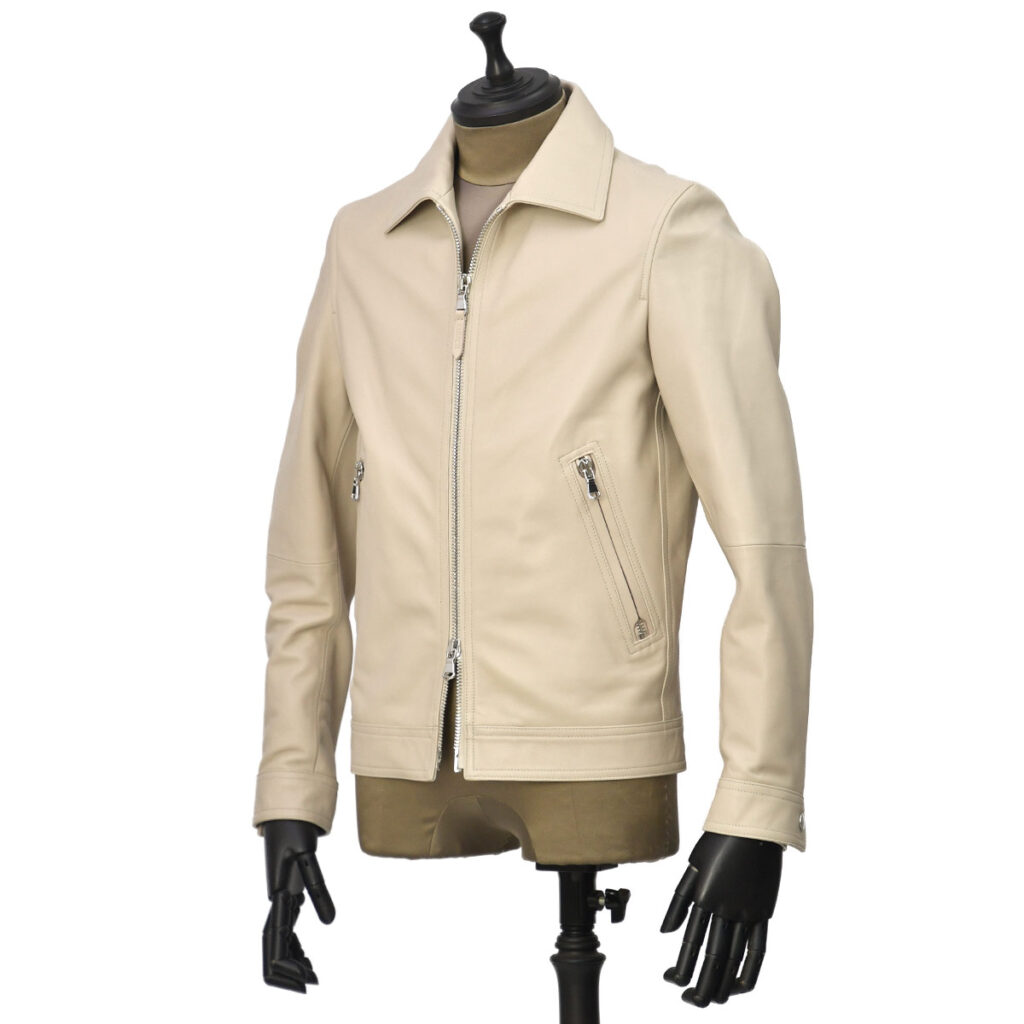 ♣EMMETI【エンメティ】襟付きシングルライダースジャケット GIACOMO SP LAMB SKIN NAPPA SABBIA ジャコモ ラムレザー ライトベージュ