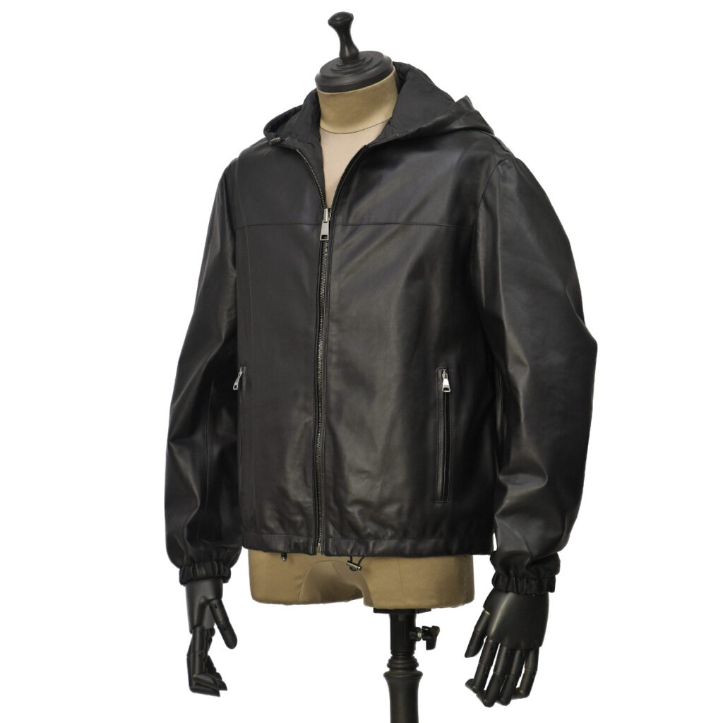 ♣EMMETI【エンメティ】リバーシブルジップアップパーカー LUCA Reversible SP LAMB SKIN NAPPA RIBA NERO ルカ ラムレザー ブラック