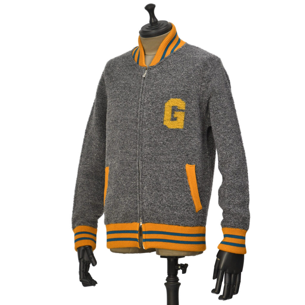 ♣GALLIA KNIT PROJECT【ガリア ニットプロジェクト】ジップアップニット スタジャン SHERIDAN U7488 028 ウール 7G グレー マスタード