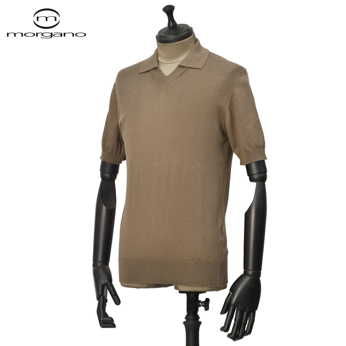 ♣MORGANO【モルガーノ】Vネックスキッパーポロ EM3351058 CC06 56 コットン 12G モカブラウン