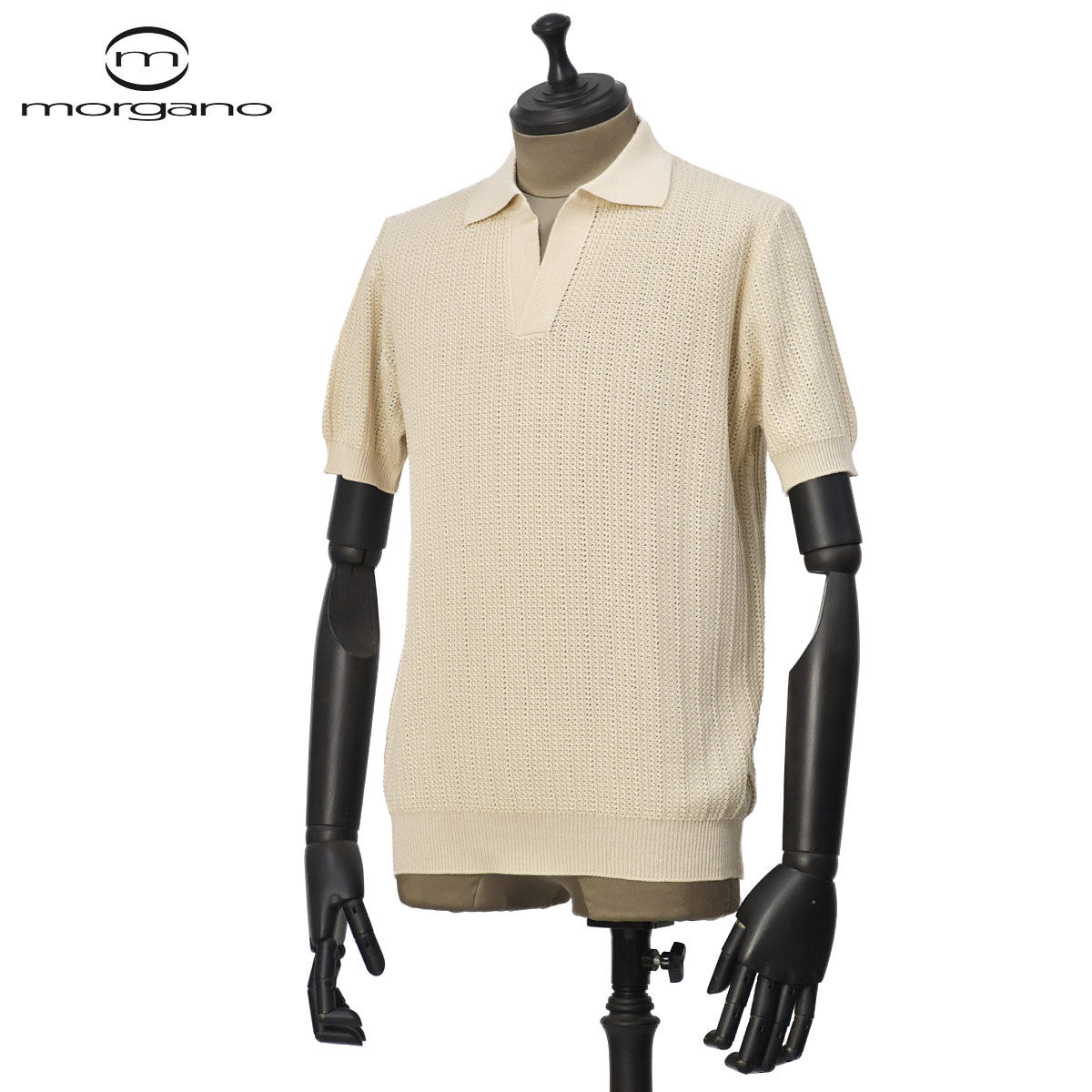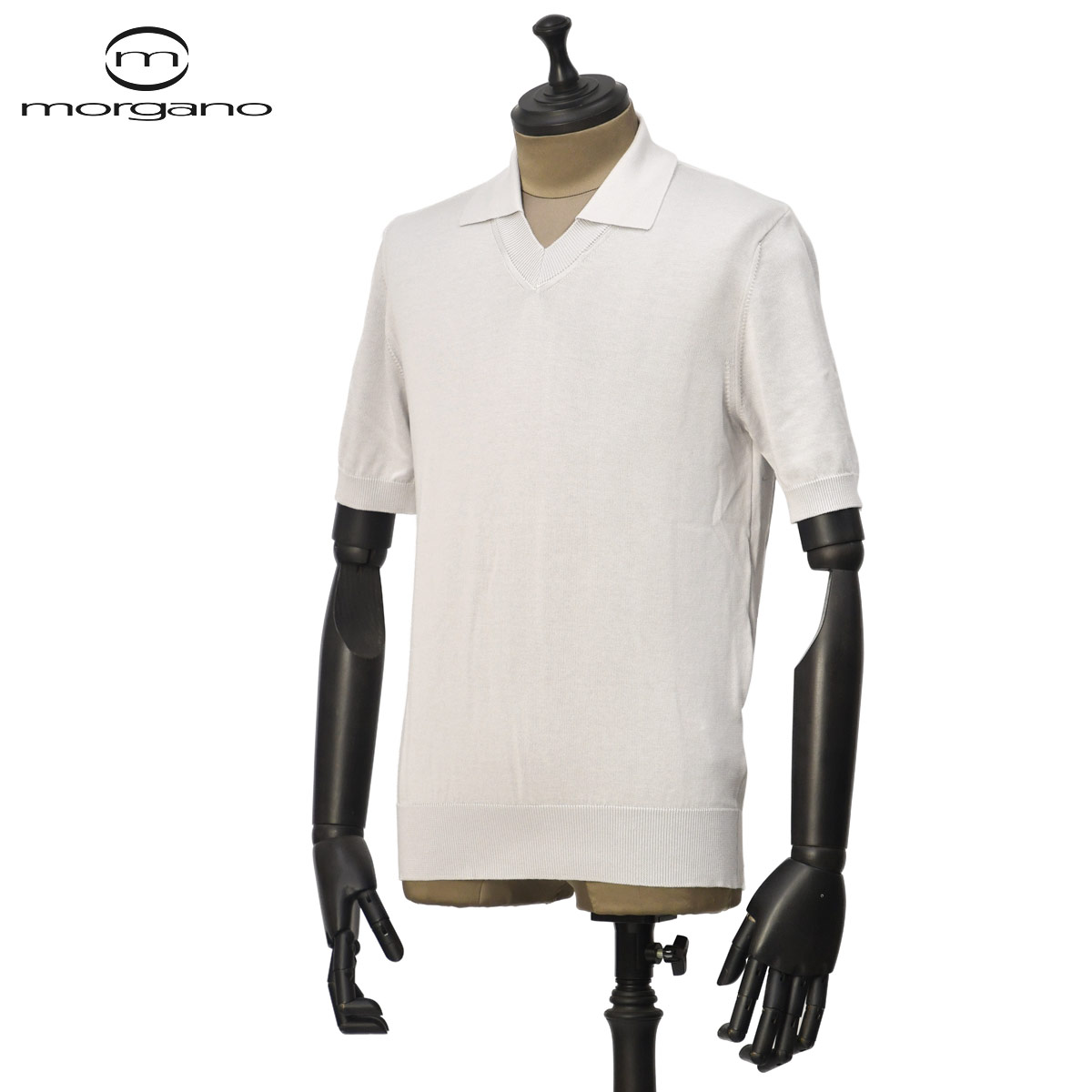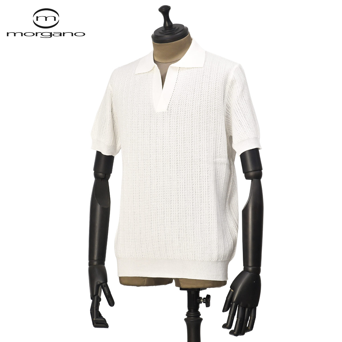 ♣MORGANO【モルガーノ】スキッパーニットポロ EM3071412 CC09 76 コットン 12G ホワイト