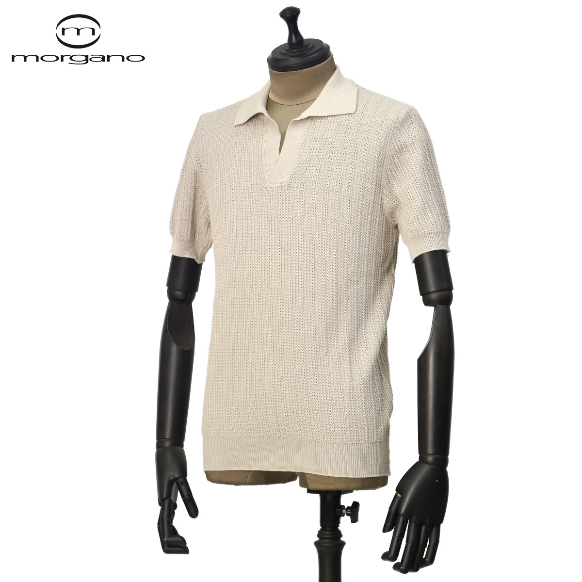 ♣MORGANO【モルガーノ】スキッパーポロ EM3071412 CC04 1458 コットン 12G ベージュ