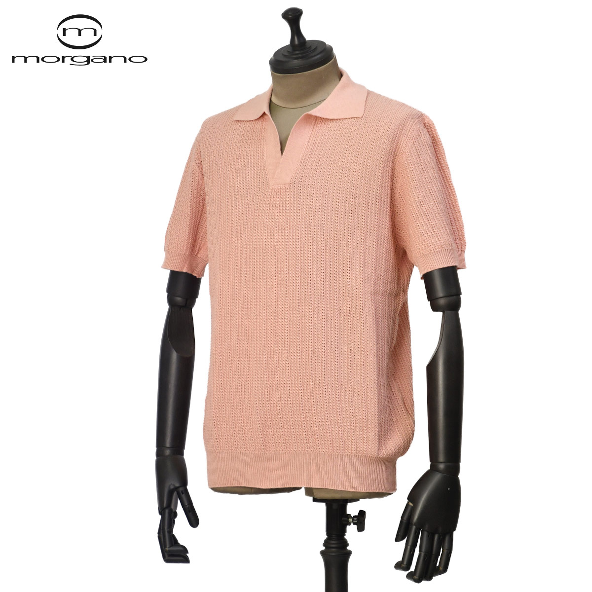 ♣MORGANO【モルガーノ】スキッパーポロ EM3071412 CC04 6757 コットン 12G ローズピンク