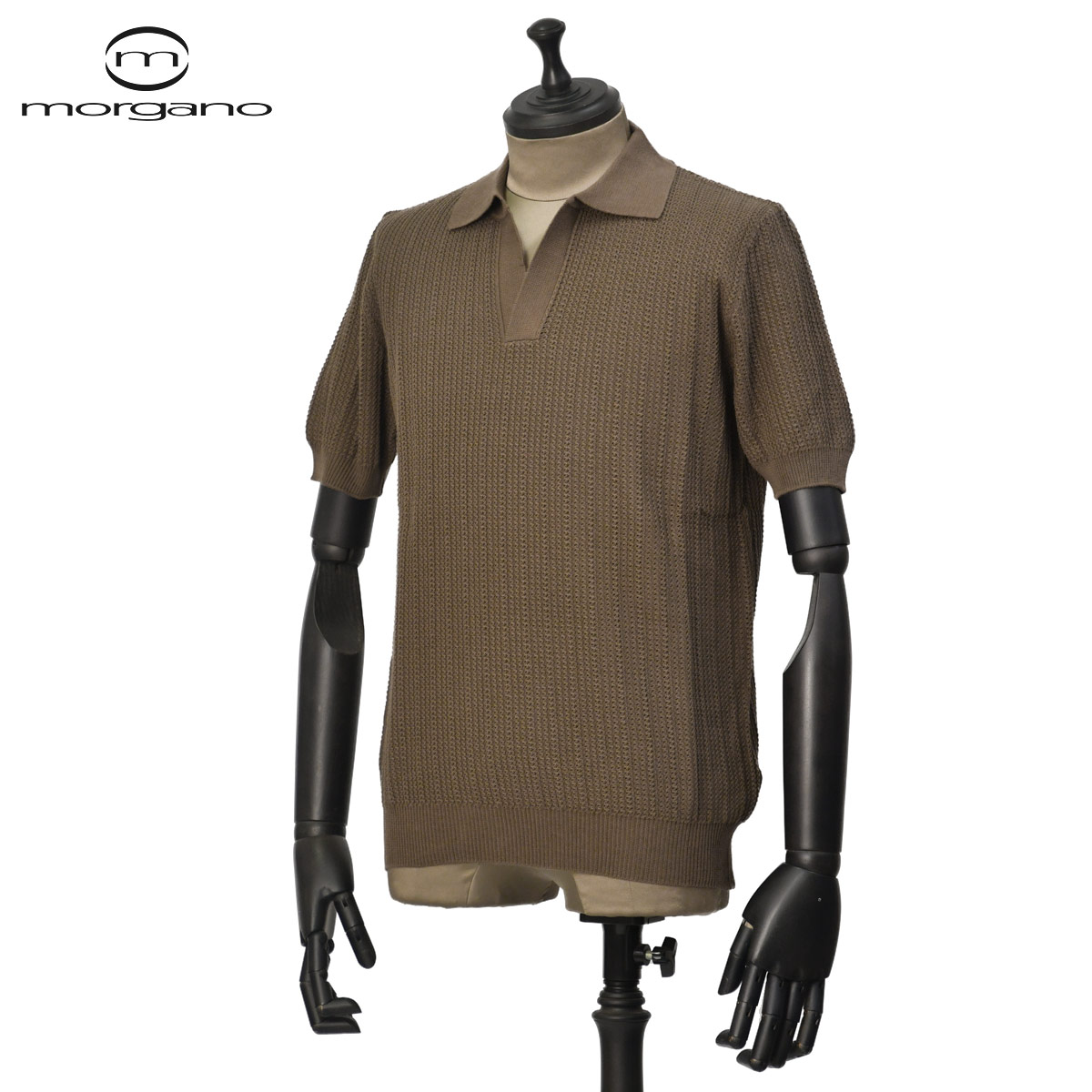 ♣MORGANO【モルガーノ】スキッパーニットポロ EM3071412 CC09 1551 コットン 12G トープ