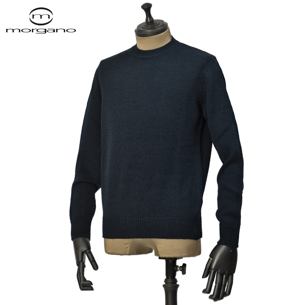 ♣MORGANO【モルガーノ】クルーネックニット EM7351887 CC21 370 コットン 5G ブルー