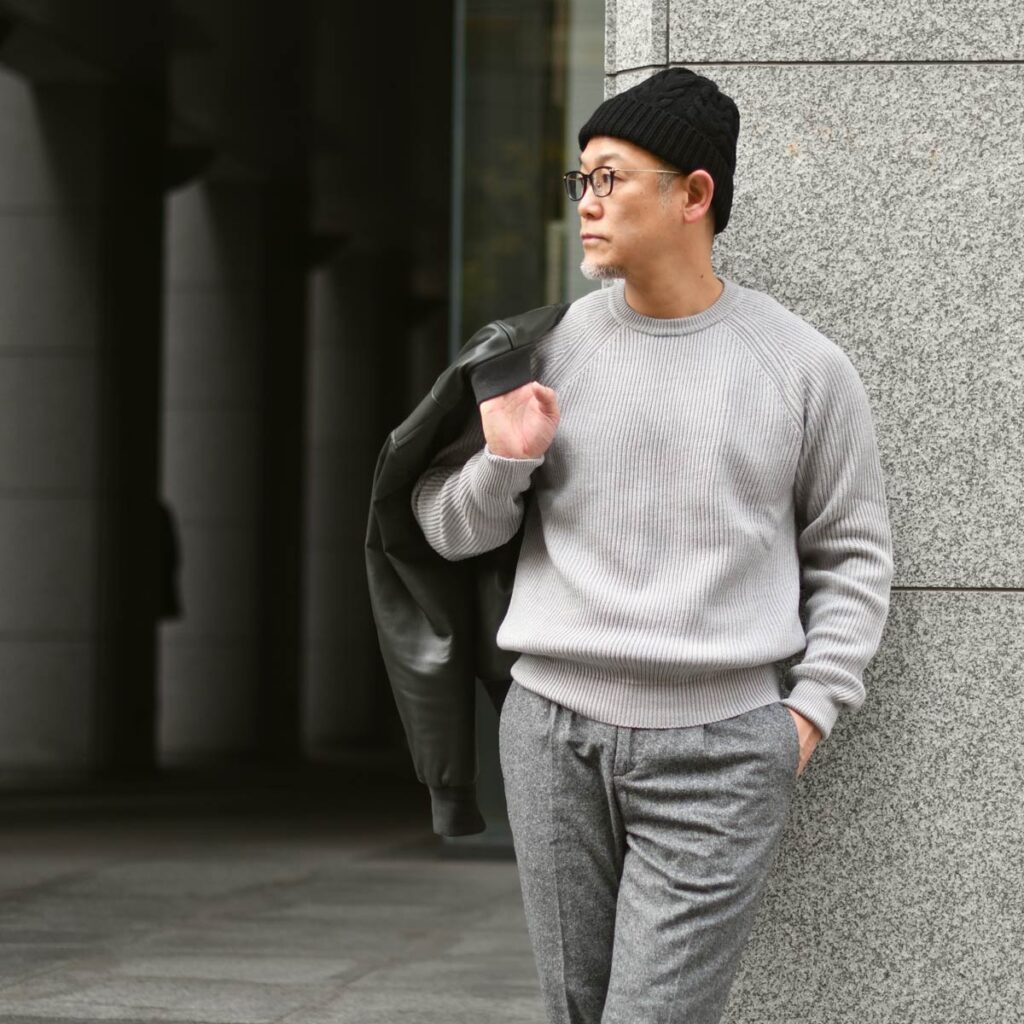 インナーはMORGANO【モルガーノ】のリブ編みクルーネックニット。