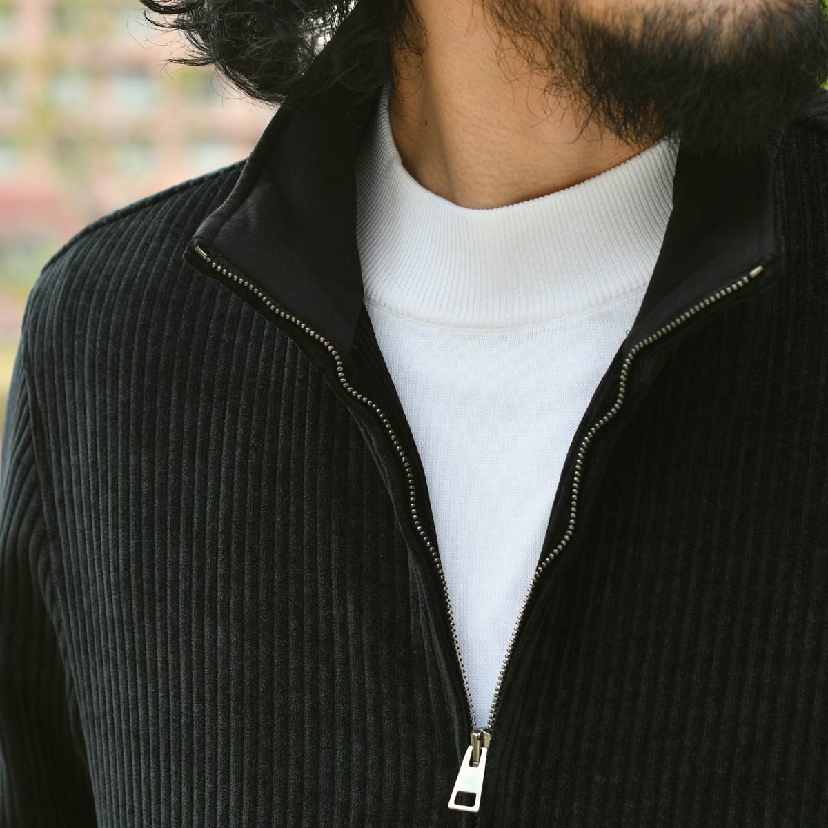素材は太畝のコーデュロイのような凹凸が特徴のニットジャージーを採用。