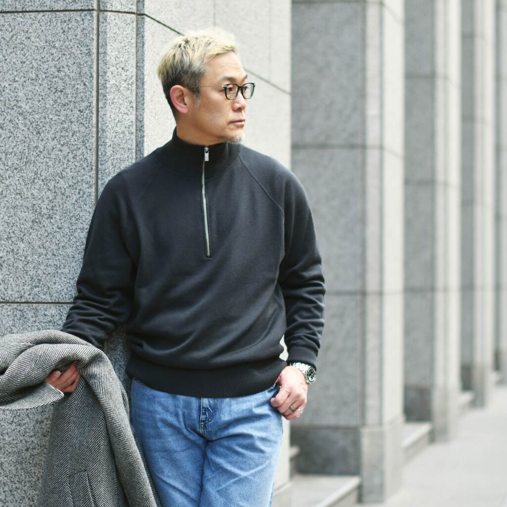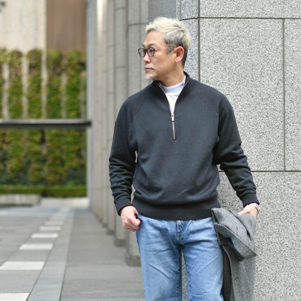 インナーにはBARENA VENEZIA【バレナ ヴェネチア】のジップアップニットをを合わせました