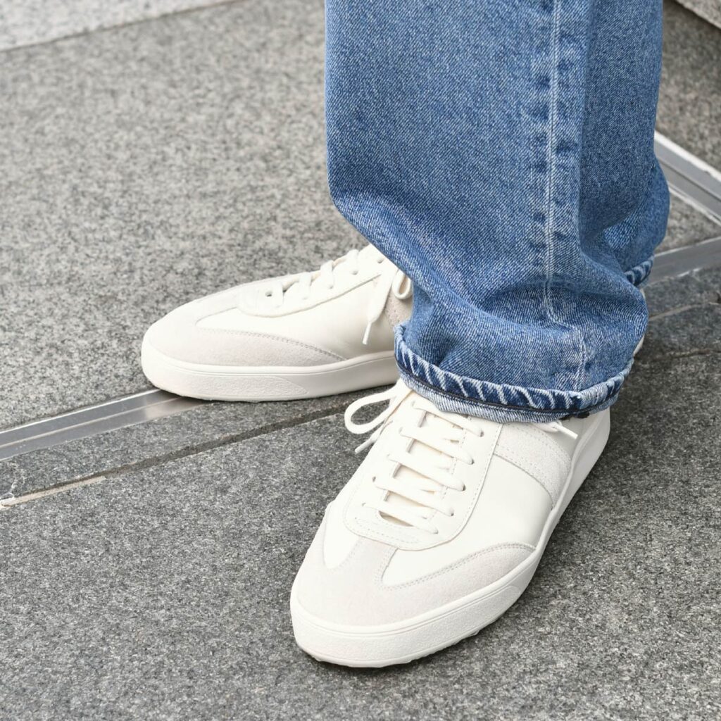 足元に白スニーカーをあわせてスポーティミックスで軽快さもプラス。