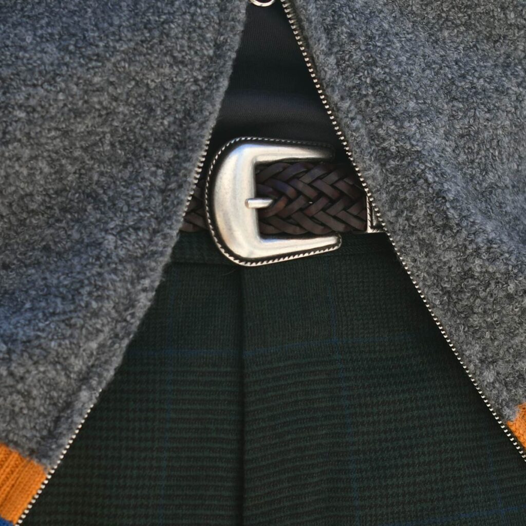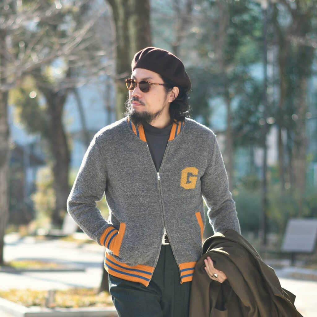 インナーにはDOMREBEL【ドムレーベル】のニットジップパーカーをあわせました。